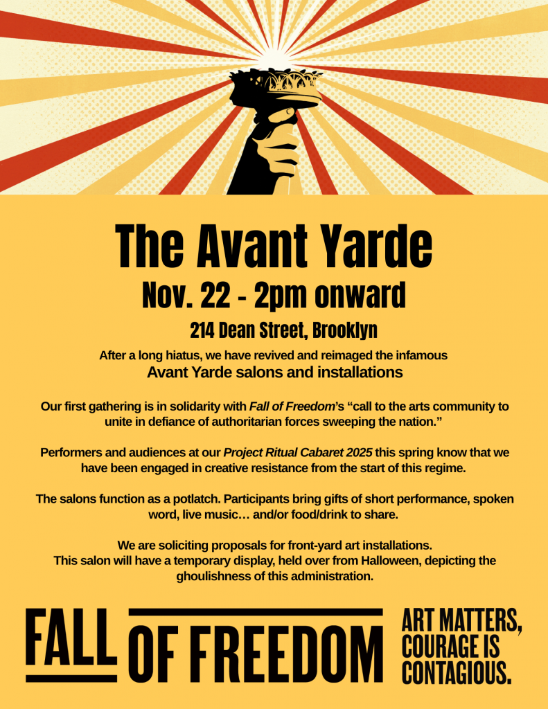 Below are some images of Avant Yarde’s Halloween display…We will build on this for the Fall of Freedom salon.Visit earlier Avant Yarde salons and installations and propose your own!